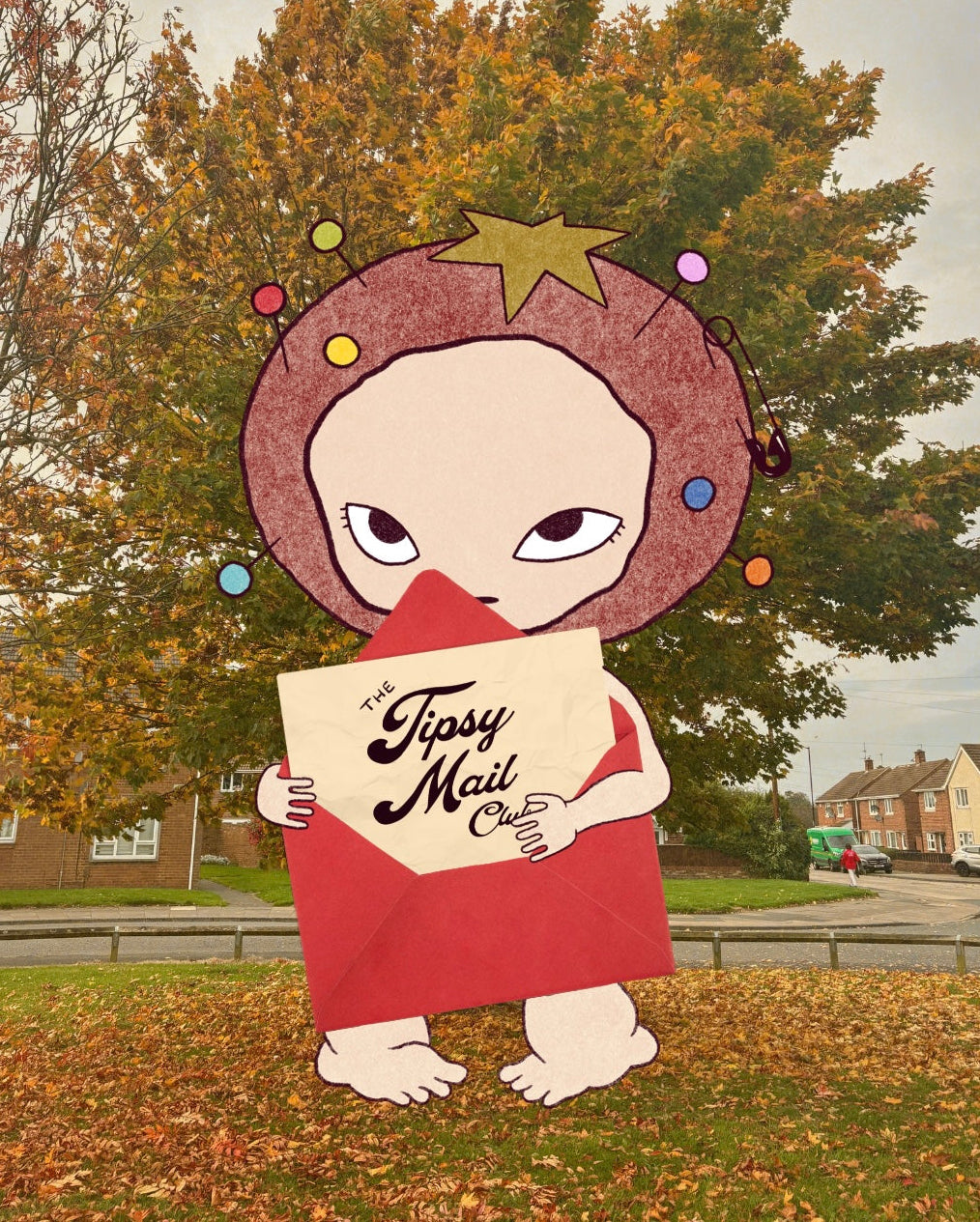 The Tipsy Mail Club is a monthly art subscription where you'll receive a curated Tipsy Troll art print, a matching vinyl sticker, and occasionally extra goodies for journaling & scrapbooking.